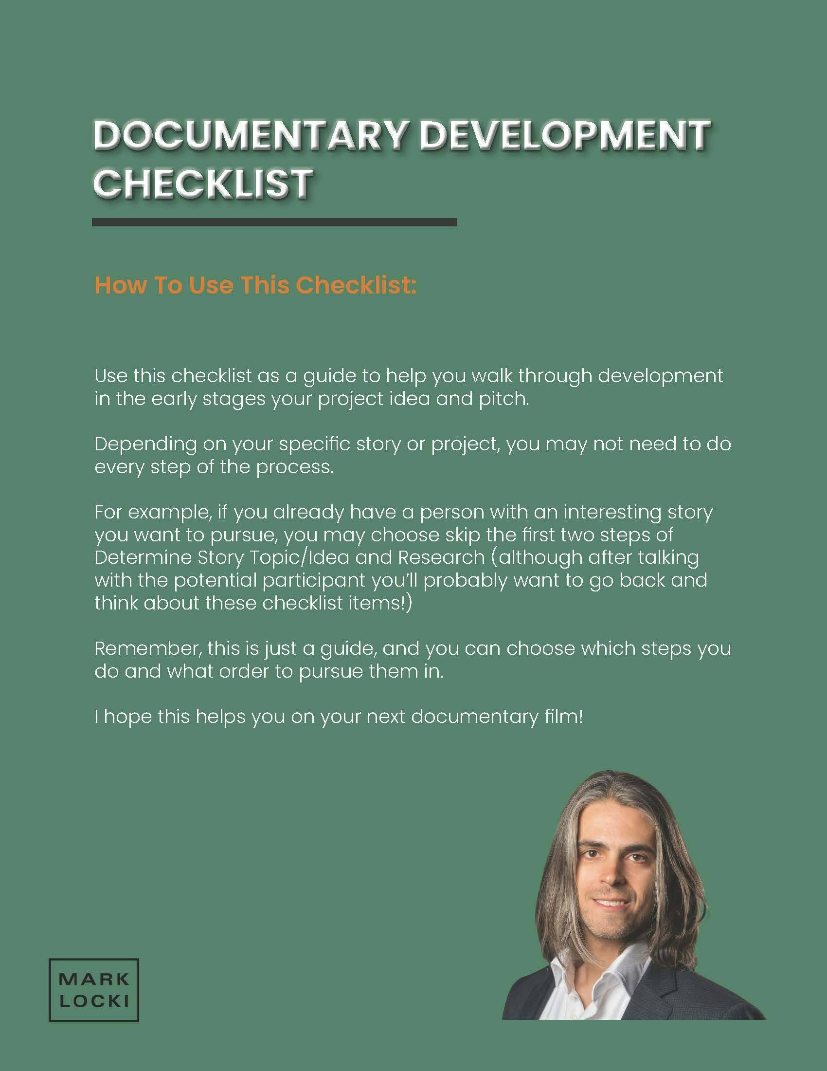 DOWNLOAD YOUR FREE CHECKLIST FOR DEVELOPING YOUR DOCUMENTARY